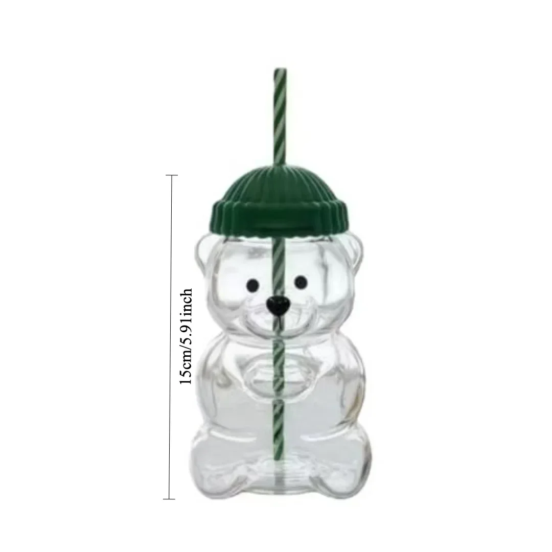 New For Starbucks Cute Animal Bear Straw Glass Transparent Glass For Men Women Birthday Christmas Gift Milk Tea Cup With Straw